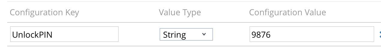 | UnlockPIN | string | (none) | Sets the emergency Unlock PIN, 4-8 digits |