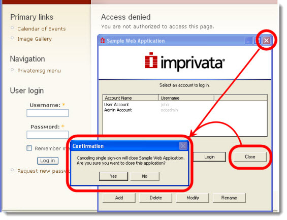 If Allow users to bypass single sign-on to access applications is not selected, and a user clicks Close, Enterprise Access Management terminates the application. If you have configured a shutdown sequence, then Enterprise Access Management runs that sequence.