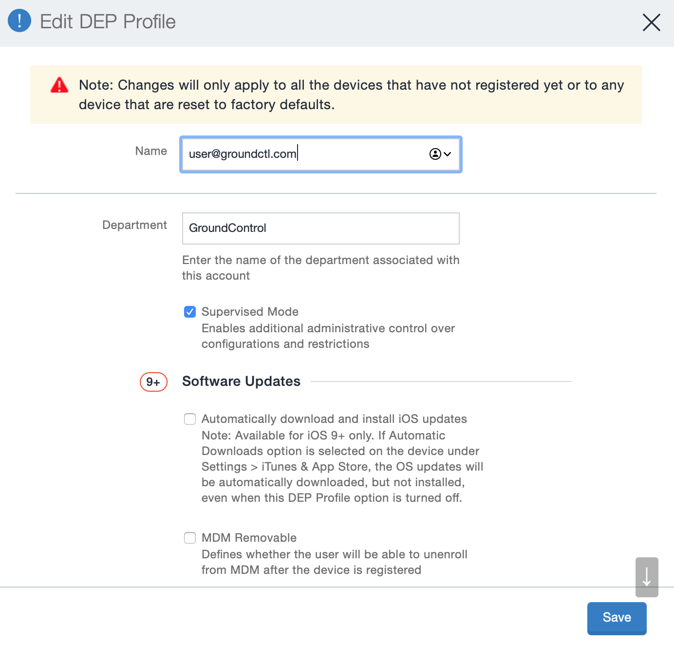 When you switch a Workflow from “Manage with GroundControl” to “Manage with DEP”, several things change, because MAM no longer manages device supervision.