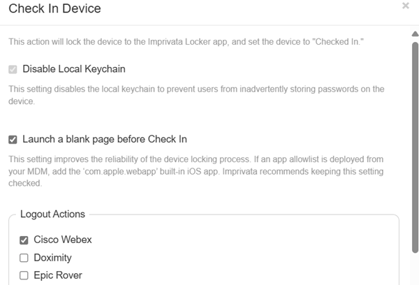 MAM’s Check In Device Workflow action includes an action to sign out of Cisco Webex.