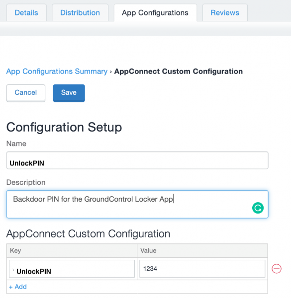In the following examples, Mobile Access Management uses AppConfig to set the emergency Unlock PIN for the Imprivata Locker app.