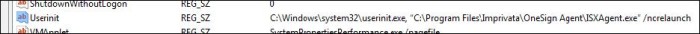 - The new value of Userinit should be: C:\Windows\system32\userinit.exe, "C:\Program Files (x86)\Imprivata\OneSign Agent\x64\ISXAgent.exe" /norelaunch